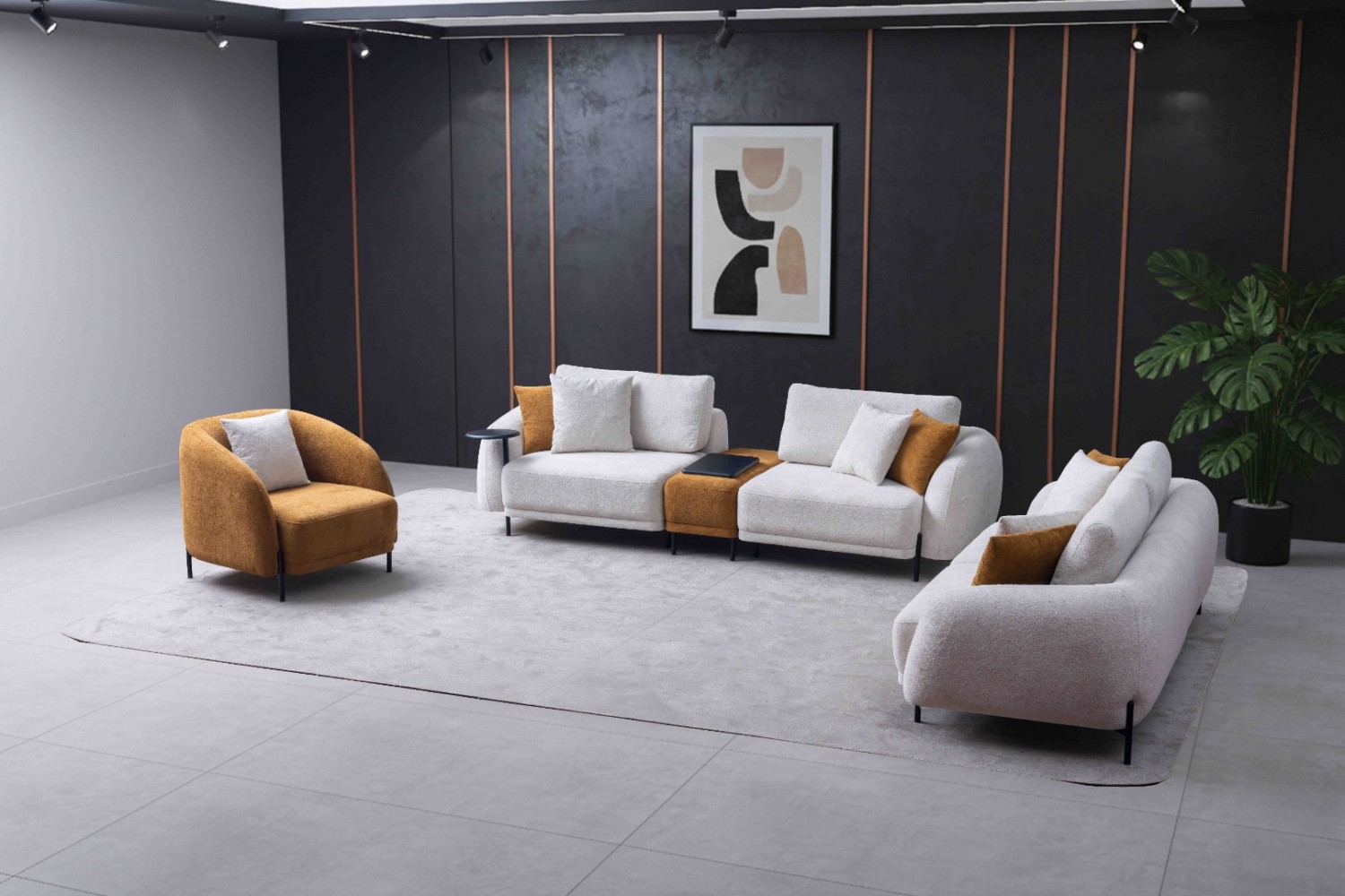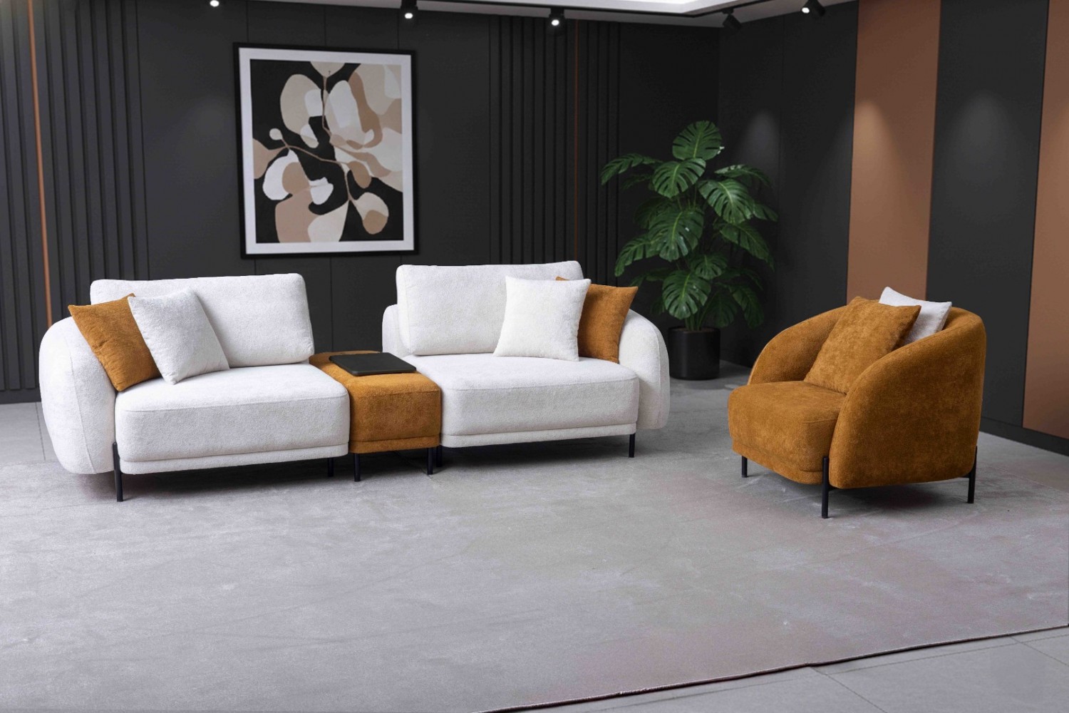 | Takım İçeriği | 2 adet Üçlü ve 1 adet Berjer'den oluşmaktadır. (4+3+1). Ara Modül ölçüleri: Genişlik, 42 vm, Derinlik 105 cm, Yükseklik 42 cm |